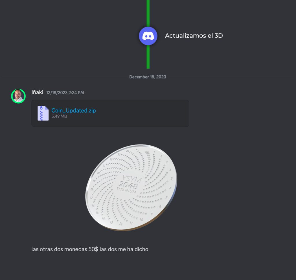 La emoción nos embarga, y necesitábamos probar ya el archivo .STEP que nos envió nuestro Gig. Por lo tanto, hemos impreso una prueba de la moneda en una vieja impresora 3D. Aunque el resultado no es del todo perfecto debido a la limitación de la impresora, nuestro Yoseyomo pinta más que bien ❤️.