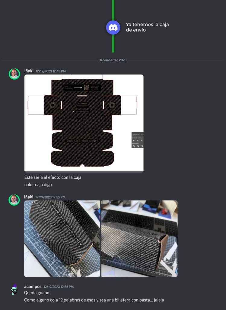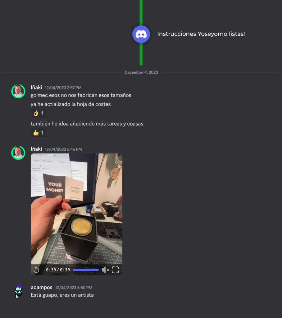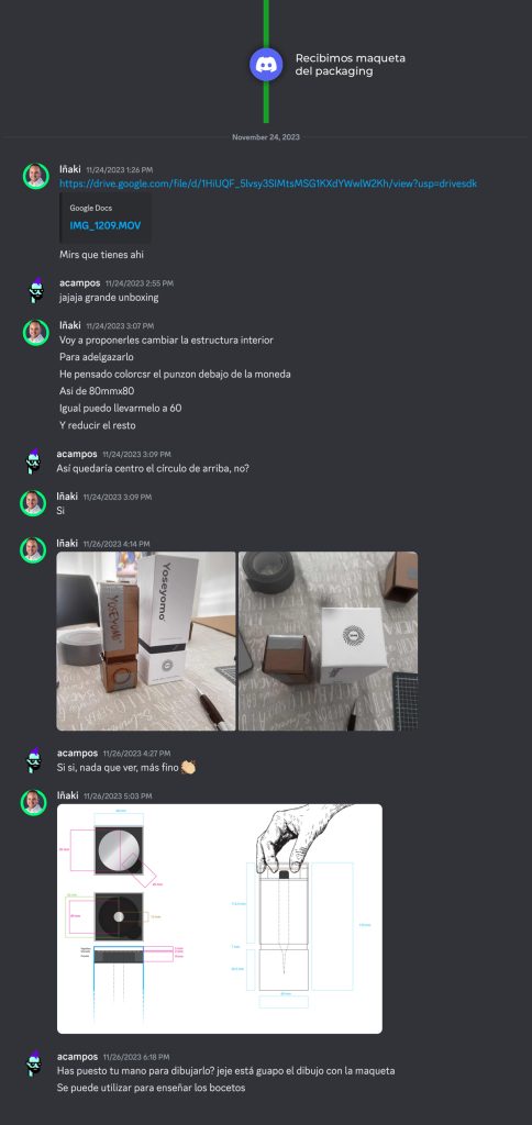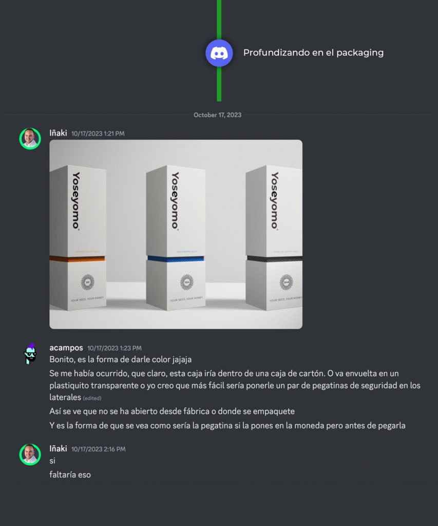 En paralelo hemos empezado ya el proceso creativo con el packaging. Nuestra visión es que sea elegante, hermoso y que eleve a la moneda Yoseyomo a un pedestal, como si se tratara de una obra de arte o de lujo. En nuestra búsqueda por idear la mejor manera de presentar el producto, hemos llevado a cabo diversas pruebas de ingeniería.