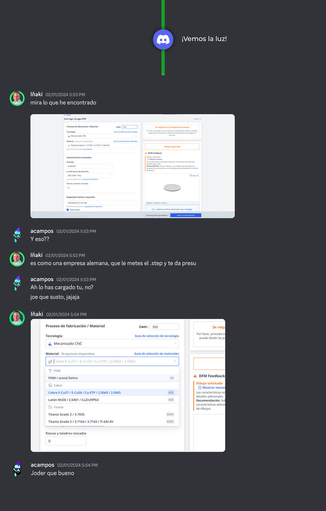 Hoy también ha sido un día histórico para nuestro proyecto. Los alemanes han confirmado que pueden fabricar Yoseyomo, así que hemos tramitado la muestra en titanio, que era el material más difícil de hacer por su dureza, y caro.