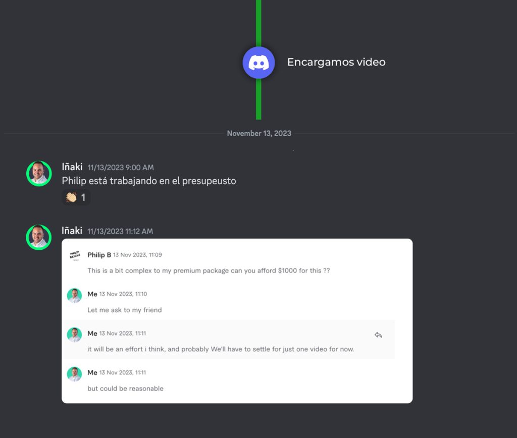 Abortamos misión con Phill. El resultado que nos manda, no es ni de lejos la calidad del trabajo que mostraba en su portfolio. Sospechamos que no es suyo. Así que le mandamos 150$ por el tiempo invertido. Vamos a trabajar con un canadiense de Fiverr también, que nos cuesta 2.6 veces más. El video es algo muy importante bajo nuestra opinión. Y el Gig anterior ha resultado rana.